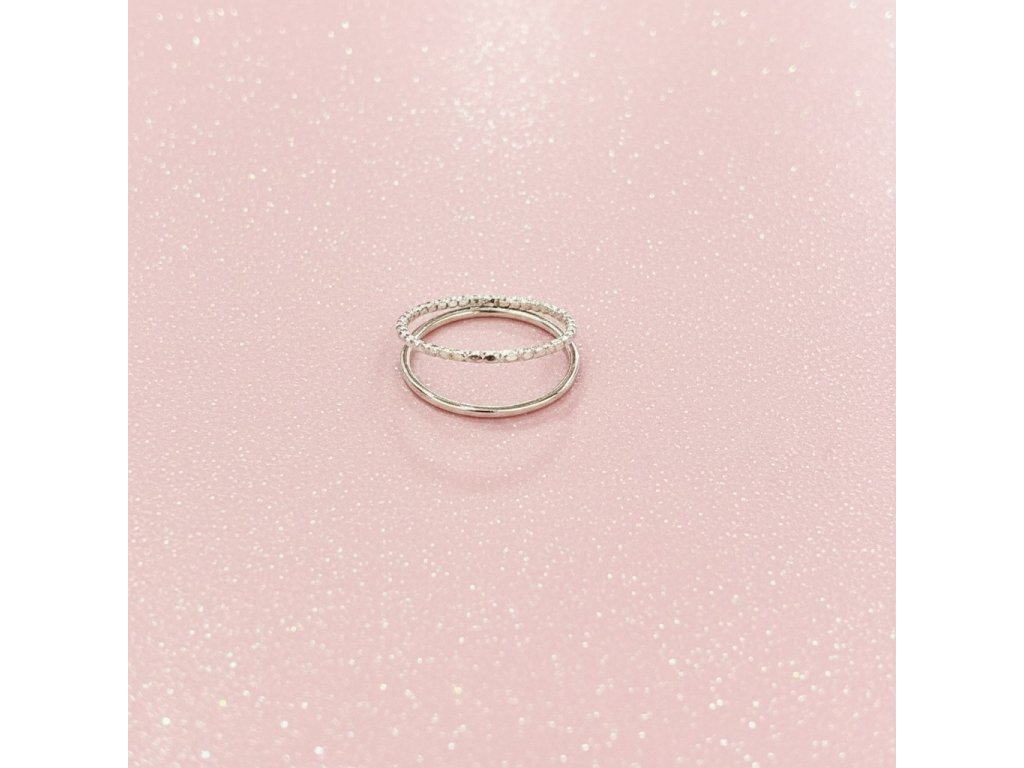 Az Eliora gyűrűszett a visszafogott elegancia tökéletes példája. Az egyik gyűrű letisztult, sima felületű, míg a másik apró kövekkel díszített, finoman csillogó darab.