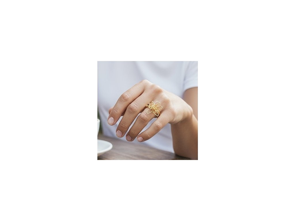 A Golden Bloom Ring a nőiesség esszenciája: egy elegáns arany tónusú gyűrű, melyet aprólékosan megmunkált virágmotívum díszít. Finom csillogása és letisztult formája miatt könnyedén viselhető hétköznapokra, de alkalmi szett részeként is gyönyörűen mutat. Ez a gyűrű a természet ihlette bájt és az időtlen eleganciát egyesíti egy apró, mégis feltűnő ékszerben.