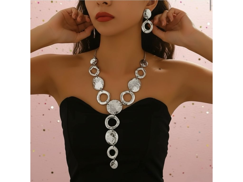 A nyaklánc hangsúlyos, mégsem túlzó, a hozzá tartozó fülbevaló pedig tökéletesen kiegészíti az összhatást. Ideális választás, ha egy egyszerű ruhát szeretnél különlegessé tenni, vagy ha egy megjelenéshez kell az a bizonyos plusz.