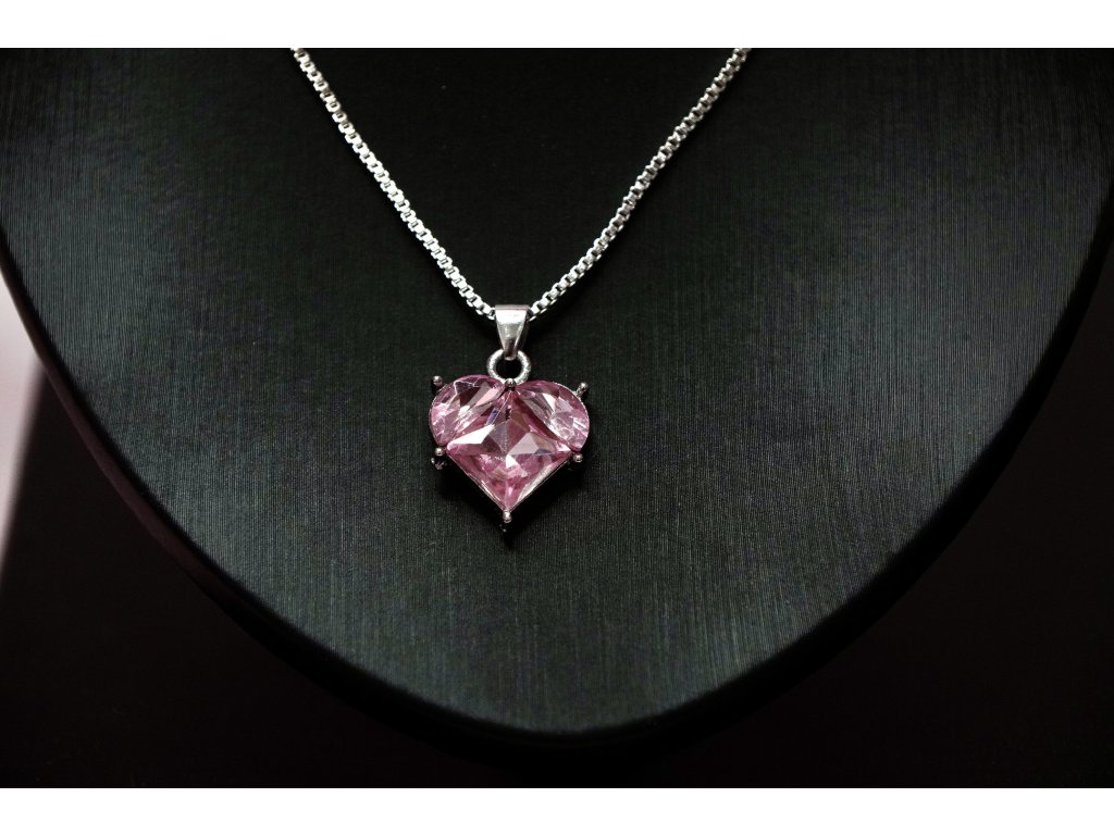 Rosé Heart ékszer szett női ékszerszett | rózsaszín szív alakú kristályos nyaklánc és fülbevaló