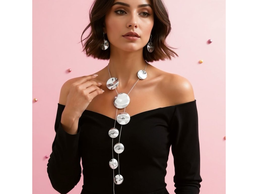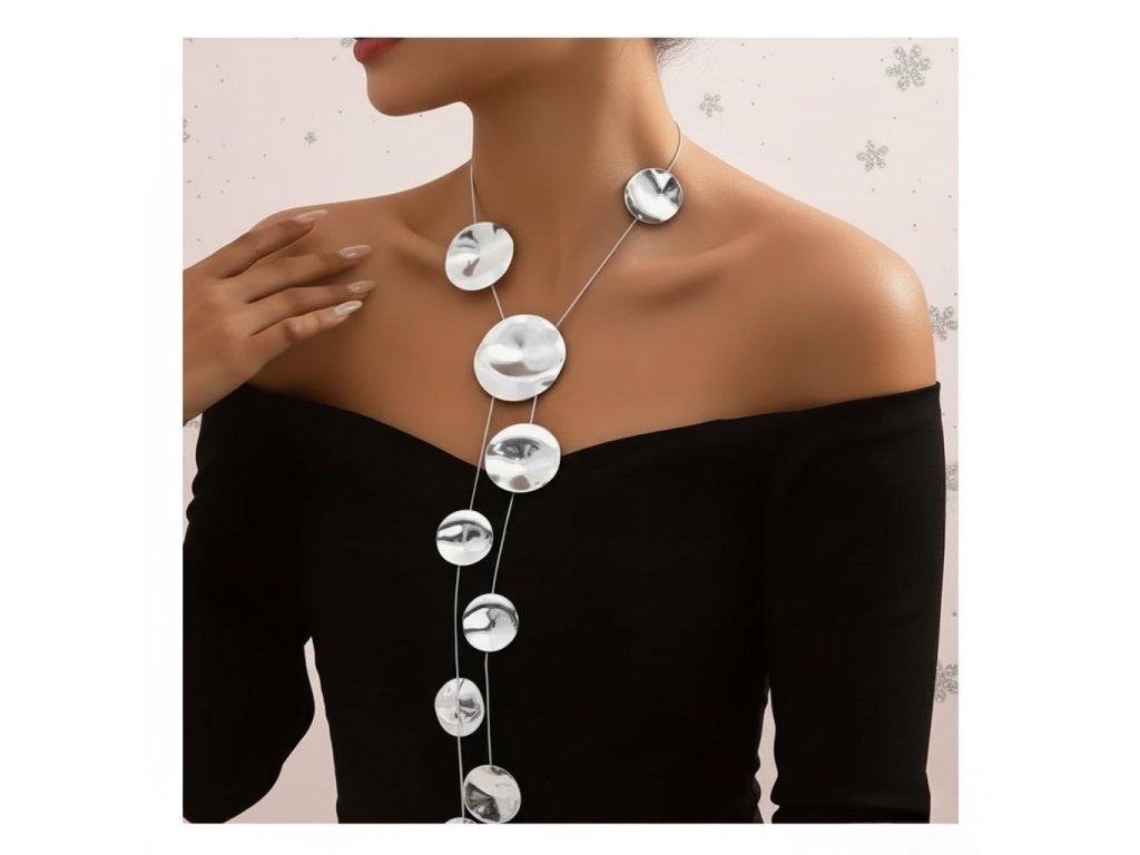 A Silver Flow nyaklánc a minimalista elegancia tökéletes példája. A fényes, kör alakú fém elemek játékosan követik egymást, miközben finoman nyújtják a nyakat és kiemelik a dekoltázst.