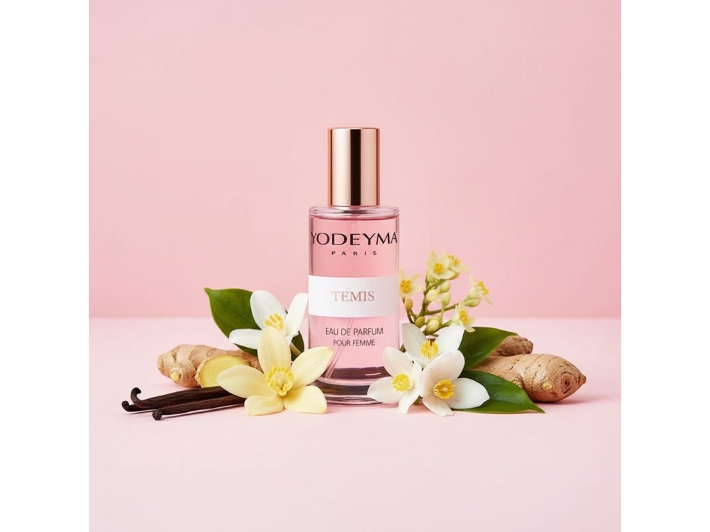 Ez a modern női illat a klasszikus parfümkedvencek eleganciáját ötvözi a mai kor provokatív hangulatával. A YODEYMA Temis friss mandarinja édesen keveredik az orientális gyömbérrel, miközben a jázmin hangsúlyozza a nőiességet. A szívben rejlő só játékos kontrasztot ad a vaníliával, az alap pedig fás, szantálfa és kasmírdió jegyekből áll, kiegészítve állati ambrával, így teremtve magával ragadó és hosszan tartó aurát. Ideális választás mindennapi viseletre, de különleges alkalmakra is, amikor igazi istennőként szeretnél ragyogni.