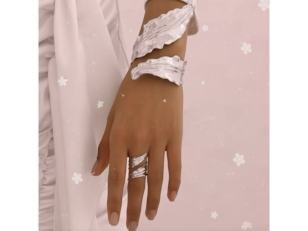 A karkötő és a gyűrű együtt erőteljes, mégis visszafogott stílust képviselnek, tökéletesen illeszkedve modern, letisztult outfitekhez. Könnyű viselet, amely egész nap komfortos, és egyszerre emeli ki a megjelenést anélkül, hogy túlzó lenne.
